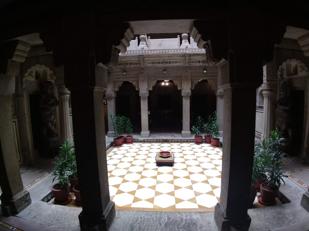 Our place of stay, the Brij Rama Palace, was located on Munshi Ghaat, right next to Dashashwamedh ghaat, and was a former palace turned into a hotel. It was originally built in 1812 by the minister for the estate of Nagpur, Shridhara Narayana Munshi, after whom the ghaat is named. The palace was acquired by the king of Darbhanga in 1915, who renovated it and added more floors as well as an elevator, which was probably one of the first in India. The building eventually fell into disrepair, before being bought by the current owners in 1998. It took 18 years of restoration work to convert the erstwhile Darbhanga Palace into Brij Rama Palace.