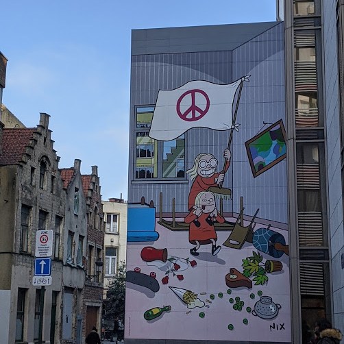 We landed in Brussels next, to enjoy the birthplace of the greatest comics and characters of all times and the city that hosts street art like no other. We enjoyed the Grand Place, the enormous Christmas tree, vibrant Christmas markets spread across the city selling knick-knacks, food and gluhwein (hot wine), the innumerable bakeries filled with handmade chocolates, waffles and cakes, the official and unofficial stores selling Tintin, Asterix and all other comic book figurines, books and other attractive merchandise. We even tracked down two of the three peeing statues of Brussels, the Mannekin Pis and and the Zinneke Pis. But the most fun we had was following the comic strip walk, which took us to various wall arts paying tribute to characters from various Franco-Belgian comics on the city walls. We figured out after finding a few that these graffitis are like puzzles, hidden at nooks and corners of old buildings that would loom up suddenly in front of us at one turn or the other. These wall paintings are part of a wider project of street art in Brussels, supported by the city, to help local artists celebrate and promote its heritage and humour. Again I remembered our own cities which have so much potential provided the ideas, intentions and implementation are right!