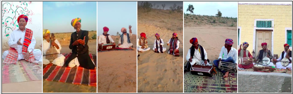 When I asked them how they felt about their live online programmes, each had something interesting to say. Some of the younger artists were excited to be able to perform online and reach out to hundreds of listeners even during these times of lockdown. For some, this was a first- of -a -kind experience, doing a choreographed online event from their village homes, and they appreciated the efforts of my colleagues who painstakingly explained to them each and every detail of recording such live programmes. For some of the elderly performers — fathers and grandfathers of the more technology-savvy young singers— the virtual world and its nuances did not seem to have sunk in much; they were just happy that they were invited to perform, even if there was no real audience in front of them! They were told that amidst death and disease (‘ashubh ghari’, ‘kathin samay’ in their words), there will be people listening to them from somewhere behind the palm sized mobile screens, and so they carefully chose their songs and raagas. They sang about birth and life, about goodness and blessings; about loved ones who are waiting to return to each other, about calling the almighty who exists everywhere and is the world’s saviour. As they spoke about the power of the Almighty which manifests in nature, its neglect by mankind, and nature taking back control to protect earth, they kept referring back to the lyrics of these songs: “Har dil mein basta tu, har rang me tu hi tu…”, etc. There were a few who emphasized a feeling of being connected to other artists, singers, musicians and friends, both old and new, who have heard their programme and have called or written to applaud them. They said that even when they are physically miles apart, they feel closer to each other through interactions and musical exchange, which is giving them some positive energy to cope with present uncertainty and secluded life. In their words, “humein lag raha hai hamare sath koi hai”, “sannata nehi hai, sab nazdeek aa gaye”, “jhum gaye sab”, etc. They harped on the confluence of music and singers of different languages and culture, from different parts of Rajasthan and Bengal (also a part of this initiative), and how each is inspiring the other by reaching out with their own melody and songs, even during the lockdown. According to them, music is giving them the strength and encouragement to not lose hope. Some of the lesser known and newer artists felt a sense of achievement as they sang on the same digital platform where renowned, senior and even Padmashree awardee artists also performed. When they found some of the Gurus of these musical forms, who otherwise remain extremely busy with their travels and programmes, listening to them, and dropping appreciative comments, they felt happy, encouraged and fulfilled! They kept telling me, “Dil khush ho gaya’! The Gurus and masters expressed their joy of watching artists from interiors of rural Rajasthan performing together with their family members, sons and even grandsons, who have learned to sing even before they learned to speak, as children.
