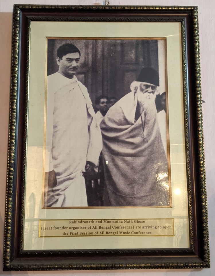 There was the hall of music, where oil portraits of the great musicians who performed here were hung. In the centre was a huge photograph of Rabindranath Tagore with Manmatha Nath Ghose, arriving to launch the first All Bengal Music Conference.
